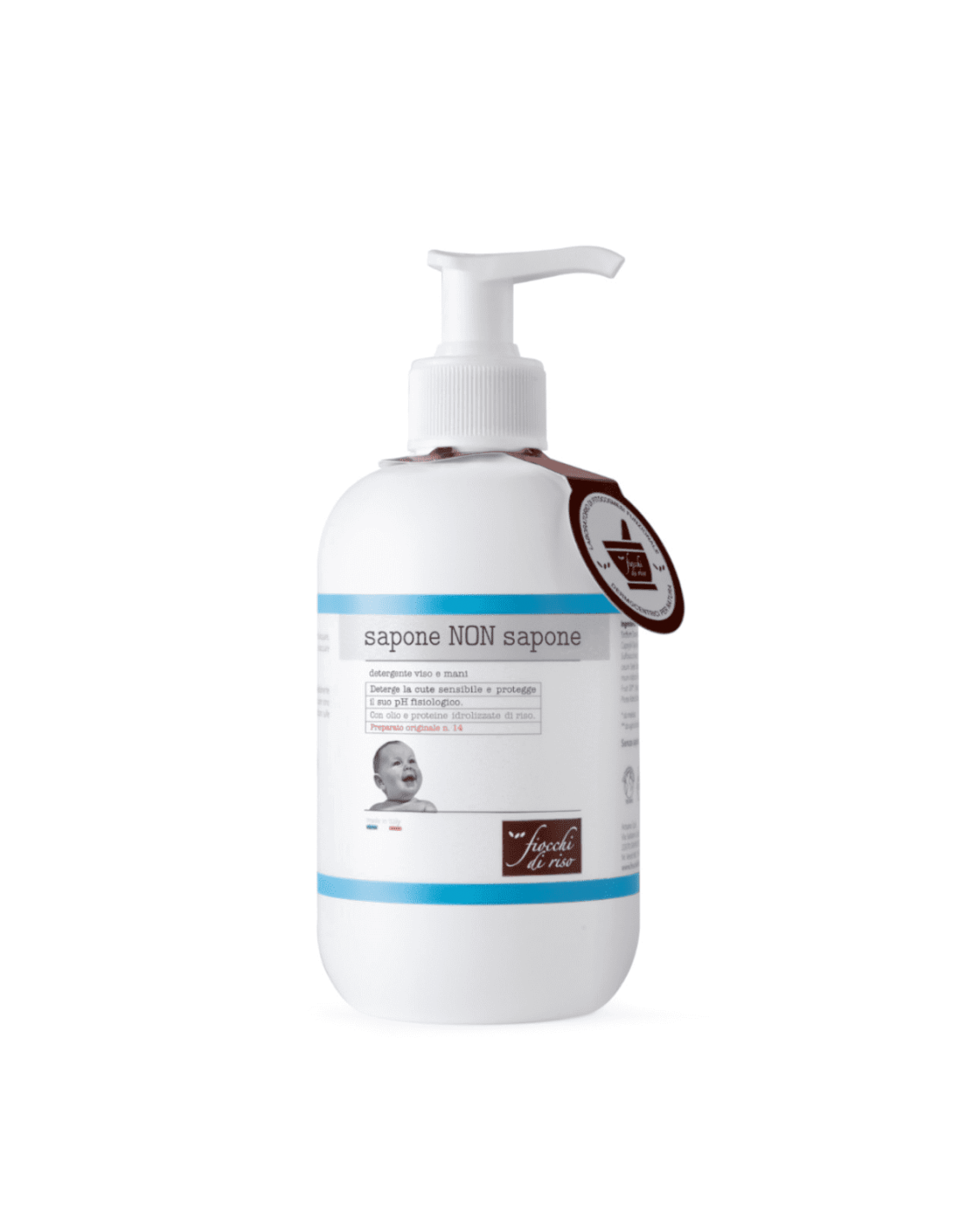 Il Fiocchi di Riso Sapone non Sapone per Viso e Mani 400 ml è un detergente delicato studiato per la pulizia quotidiana della pelle sensibile. La sua formulazione senza sapone rispetta il pH fisiologico della cute e il film idrolipidico, prevenendo secchezza e irritazioni. Arricchito con olio di riso da crusca e proteine idrolizzate di riso, deterge con dolcezza, idrata e protegge la pelle. Dermatologicamente testato e nichel tested, è ideale per tutta la famiglia, anche per le pelli più delicate.