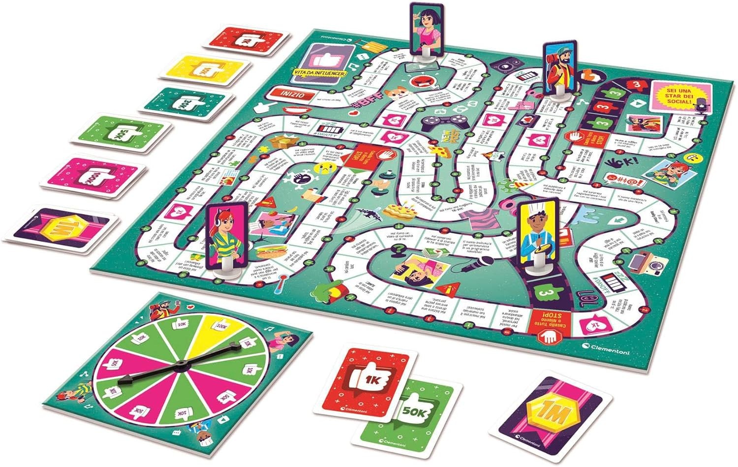 Entra nel mondo scintillante e competitivo dei social media con "Vita da Influencer", il gioco da tavolo strategico e divertente ideato da Clementoni. Progettato per 2-4 giocatori, questo gioco di percorso ti mette nei panni di un aspirante Content Creator con un unico obiettivo: raggiungere la vetta della popolarità digitale.