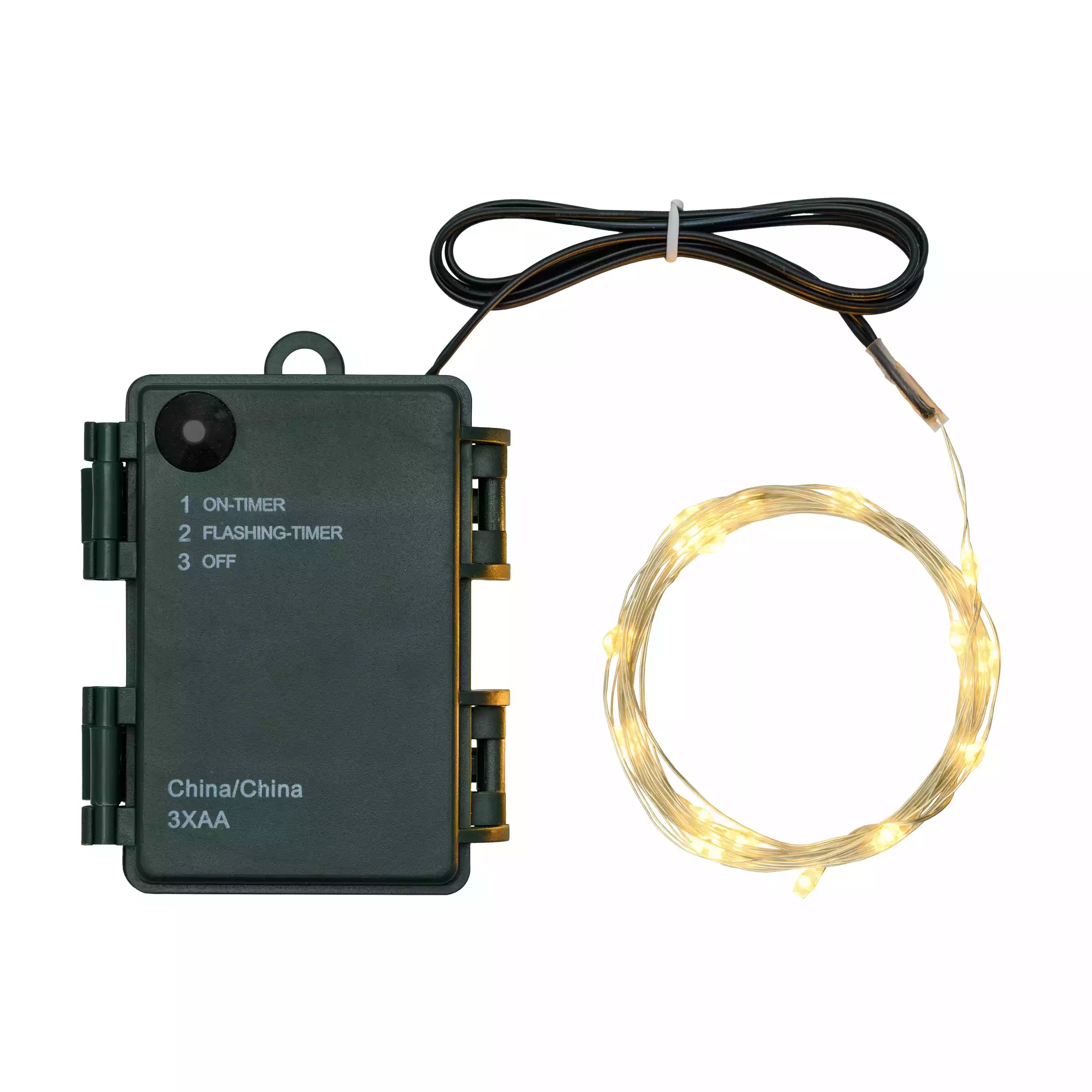Questa catena lineare da 4 metri con 40 MicroLED Bianco Caldo Ø1,5mm è perfetta per creare atmosfere accoglienti sia all'interno che all'esterno grazie alla certificazione IP44. Il cavo in metallo Argento Metal Silver offre un tocco elegante, mentre il Memory Controller integrato nel porta batterie consente di scegliere tra luce fissa, 7 giochi di luce selezionabili, e l’opzione di spegnimento. Alimentata da 3 batterie AA (non incluse), è dotata di un pratico timer On-Off regolabile da 8 a 16 ore. Il prodotto è confezionato in una scatola PVC colorata con espositore PDQ Try me, ideale per esposizione.