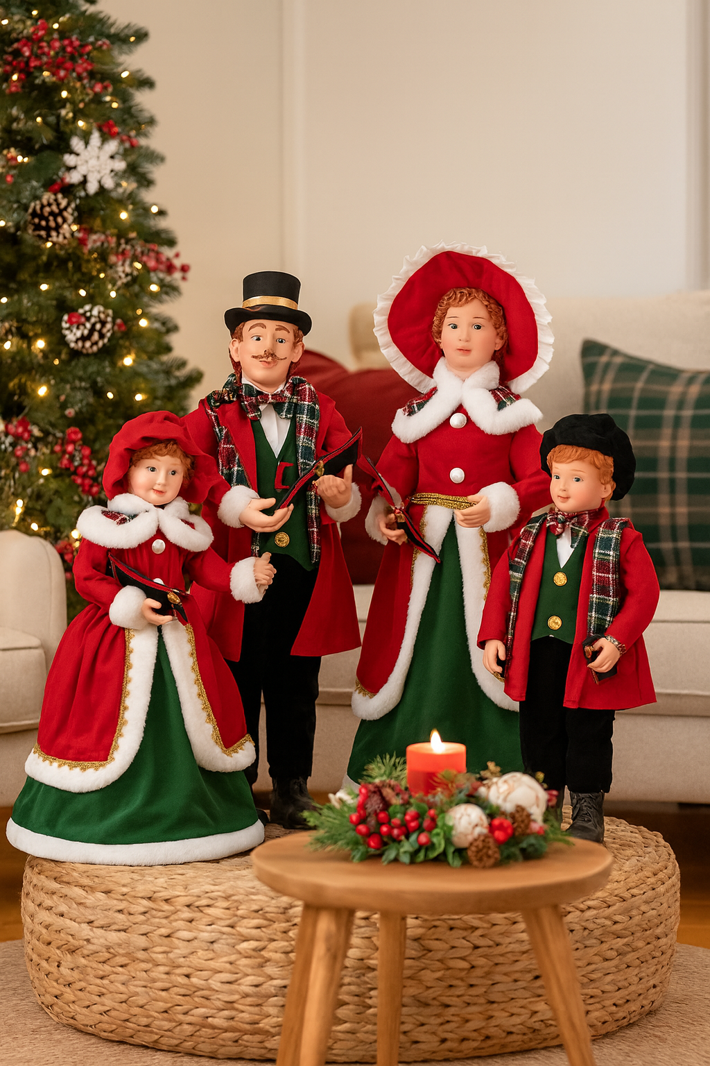 La famiglia cantori di Natale rosso verde è una decorazione elegante che celebra la tradizione dei cori natalizi. Le statuine, curate nei dettagli e nei colori classici rosso e verde, evocano la gioia delle melodie delle feste, creando un’atmosfera calda e suggestiva. Ideali per arricchire salotti, tavoli o vetrine, diventano protagoniste delle decorazioni natalizie con un tocco scenografico e raffinato.