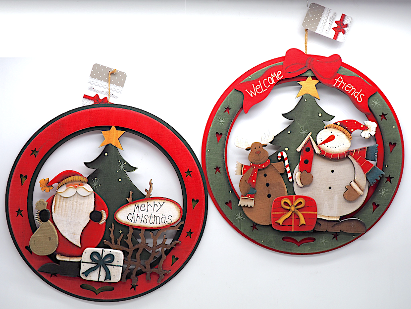 Decorazione Corona 30cm Natalizia con Disegni Assortiti, Ghirlanda Tradizionale da Appendere