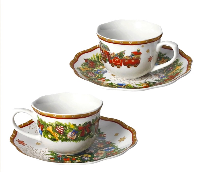 Set 2 Tazzine Caffè Brandani Christmas – Porcellana Natalizia con Piattini