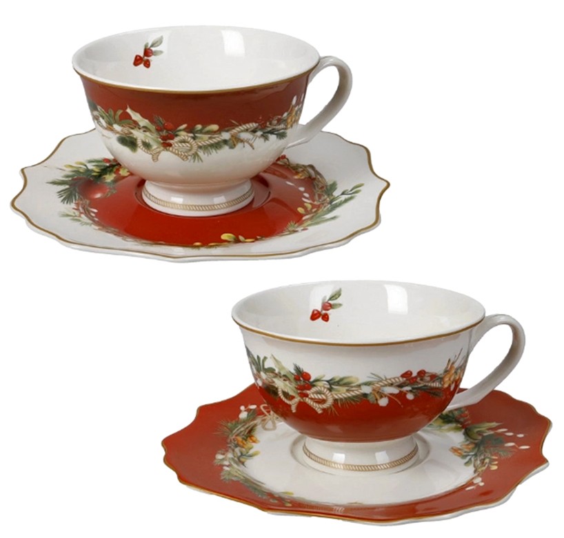 - Set 2 Tazze Te con Piattino Carol: Elegante set natalizio in new bone china firmato Brandani.