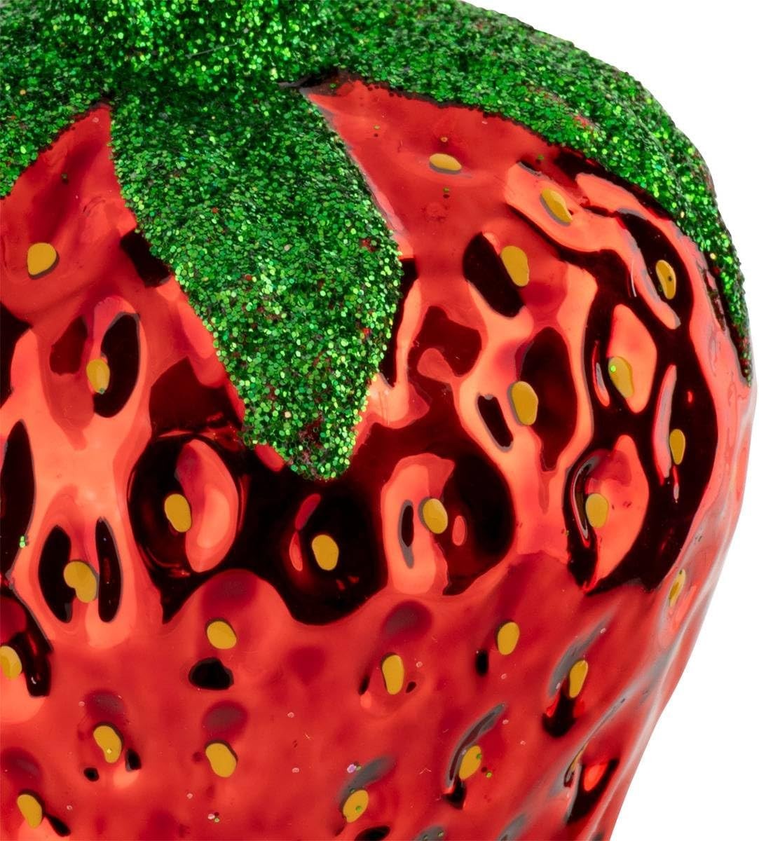 Decorazione pendente di Natale fragola in vetro rosso 8cm: originale e luminosa, perfetta per un albero allegro e raffinato.