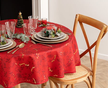 a Tovaglia di Natale di 180 cm di diametro è un elegante complemento per la tua tavola festiva. Realizzata in rosso e oro, aggiunge un tocco di classe e raffinatezza alle tue cene e pranzi natalizi. La sua proprietà antimacchia assicura praticità e facilita la manutenzione, mantenendo il tuo tavolo impeccabile anche durante i pasti più festivi. Con una altezza di 0,3 cm, si adatta perfettamente a diverse altezze di tavolo, rendendola una scelta versatile e decorativa per le festività